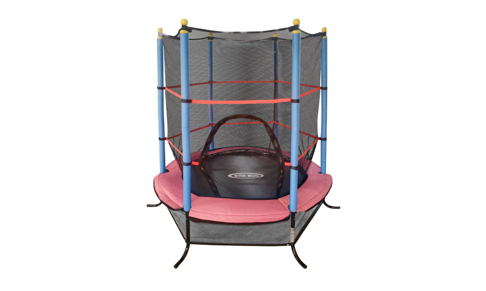 Детский батут DFC SMRKIDS 55” розового цвета станет настоящим центром развлечения, принося массу радости и удовольствия! Идеально подойдет для ребёнка весом до 45 кг, позволяя ему наслаждаться прыжками и забавными играми на свежем воздухе или в помещении! Поверхность батута изготовлена из высококачественного полипропилена, способного выдерживать ультрафиолетовые лучи, что гарантирует долговечность и надежность изделия. Внешняя защитная сетка высотой 126 см обеспечивает безопасность пользователей, предотвращая возможные выпады за пределы батута. Она легко открывается и закрывается с помощью специального замка и надежно фиксируется на стойках, выполненных из высокопрочной стали. Батут оснащен 48-ю пружинами диаметром 3 мм и длиной 86 мм, которые обеспечивают мягкость и плавность прыжков. Кроме того, батут имеет прочный защитный кожух из полиэстера, который защищает прыгунов от травм и смягчает приземление. Основная рама батута состоит из 6-ти прочных стальных труб диаметром 25 мм, что обеспечивает устойчивость и безопасность при использовании. U-образные ножки и стойки для защитной сетки также выполнены из высокопрочной стальной трубы диаметром 25 мм.