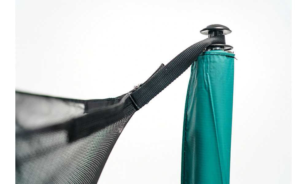 Max-lock система — позволило полностью исключить контакт с пружинным блоком! Теперь верхняя сетка фиксируется на каждом пружинном кольце обеспечивая плотное примыкание к прыжковому полотну. Безопасность для детей и взрослых — максимальна.